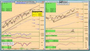 Well, as we had cautioned might be the case, FED-phoria and other confidence in central banks’ accommodative approach right now might not be enough to overcome the sort of problems which those central bank efforts do not address. And along with another somewhat hawkish (and not at all surprising) missive from the Fed’s Plosser, the geopolitical situation came back to haunt the equities. The specific worry that impacted the equities was the apparent lack of any reasonable expectation the situation in Iraq can be resolved by the formation of the ‘unity government’ the US and West so strongly desire. That is more than just a political aspect, as failure has the ability to affect energy prices as well. For more on how that combines with other influences see our “Is the S&P 500 Psych TOO Bullish” post from Friday. Even so, with all of that central bank psychology underpinning the equities, it is likely they do indeed attract buying on this initial setback to key overrun resistances.