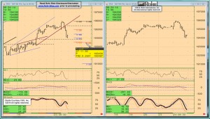 Video: There is no fresh video analysis this morning because all tendencies and technical trend levels remain very much the same as Wednesday morning’s Concise Highlights TrendVIew video for equities and govvies, and as Monday’s Global View TrendVIew video the still quietly churning foreign exchange. That includes Tuesday’s September S&P 500 future 1,953-55 DOWN CPR and other resistance, and the key resistance around Wednesday’s highs in the govvies.