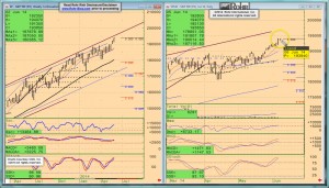 The June S&P 500 future has reached a critical juncture after the correction of the past couple of sessions. After the early Tuesday selloff DOWN Break from a minor top that did not seem to be working, it reinstated that signal when it gapped below 1,946 yesterday. Yet, as is typical of quite a few corrections in bull markets, at least so far it has failed to hit the near term downside Objective and other key supports in the 1,938-37 area. More on that below. And for now the economic influences which were weak yesterday seem to have moderated with a fairly firm OECD Q-1 G20 GDP report that highlights the growth in Asia and the UK versus some slippage elsewhere. With limited and mixed economic data this morning, that leaves some of the equity market drags in the geopolitical arena on both US political disruption and Middle East disarray… especially now in Iraq.