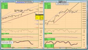 It moves on to the JUNE S&P 500 FUTURE short-term trend view at 02:30 and intermediate term at 05:20, OTHER EQUITIES from 06:10, and the GOVVIES at 09:45. It also mentions the steady activity since Tuesday morning in SHORT MONEY FORWARDS at 15:00, with the same sort of observation on FOREIGN EXCHANGE at 15:15 with the CROSS RATES at 16:30 prior to return to the JUNE S&P 500 FUTURE short term charts at 17:00 for a final view and additional perspective. We suggest using the timeline cursor to access the analysis most relevant for you.