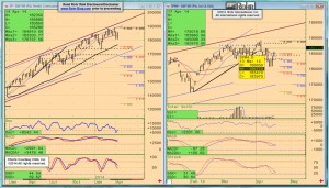 It moves on from there to the June S&P 500 future short-term trend view at 02:30 and intermediate-term at 04:20 including the important pattern and trend implications of last week’s strength extending into yesterday, the other equities at 06:20 and mention of the govvies at 07:10, short money forwards at 07:30, and discussion of foreign exchange also remaining much more subdued than other asset classes at 07:40. The only two currencies worth a look are the weakness in both AUD/USD at 08:00 and USD/JPY at 08:45, with a return to the June S&P 500 future at 09:35 for a final view and additional perspective.