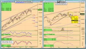 The video timeline begins with macro (i.e. fundamental influences) discussion of yesterday’s firm US data, and the weak overnight data out of Asia, Europe and the UK. We now await Canadian Retail Sales and US Advance Manufacturing PMI and New Home Sales (the natural complement to yesterday’s weakish Existing Home Sales.)