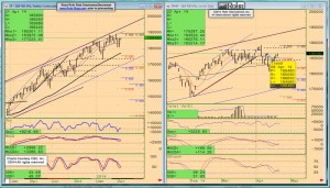 The video timeline begins with macro (i.e. fundamental influences) discussion of Monday’s light trading and today’s mixed overnight data, including stronger than expected Australian and Japanese Leading Indicators being countered by weaker than expected Euro-zone Construction Output. We now await US Existing Home Sales and Richmond Fed Index along with the Euro-zone Consumer Confidence.