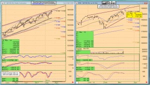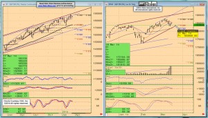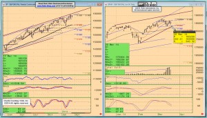 It moves on from there to the June S&P 500 future short-term trend view at 02:00 and intermediate-term at 03:50, then discussion of the other equities rally back but only to lower resistances so far, and foreign exchange conforming to yesterday morning’s analysis. That includes the US Dollar Index UP Break above .8000 yet stalling into the key .8040 area, and EUR/USD back below 1.3836 (also on a near term DOWN Break), yet with 1.3750-00 the more critical support. All other currencies are similarly still holding against the US dollar as well.