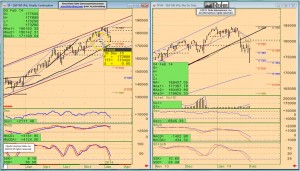 The video timeline begins with macro (i.e. fundamental influences) factor discussion of the degree to which the equities were psychologically driven by the emerging markets situation spilling over into the US. Monday’s weak ISM Manufacturing PMI was more than the previously resilient S&P 500 could bear, and hence the failure below the support noted above.