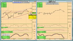 Video Timeline: It begins with a macro (i.e. fundamental influences) brief mention of some of the factors noted above. It also noted the influence of on balance weak economic data of the past couple of weeks in spite of a few high spots. Those include consistently weak Chinese data and continued devolution of US data in important areas like Retail Sales and Housing Starts to weaker levels as we await Michigan Sentiment and Leading Indicators.